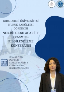 ![]() | HUKUK FAKÜLTESİ ÖĞRENCİLERİ İÇİN ERASMUS BİLGİLENDİRME KONFERANSI 09/03/2026 45 Okunma Üniversitemiz Kültürel Diplomasi ve İşbirliği Kulübü tarafından 13.03.2026 tarihinde saat: 14.30' da... |