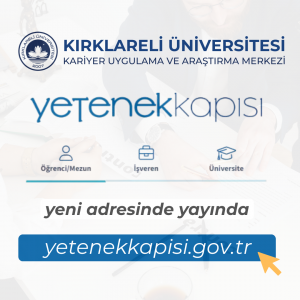 ![]() | YETENEK KAPISI PLATFORMUNUN ADRESİ DEĞİŞTİ Kariyer Uygulama ve Araştırma Merkezi 16/01/2026 191 Okunma Üniversite öğrencileri ve mezunlarını kamu ve özel sektör fırsatları, eğitim programları ve kariyer... |