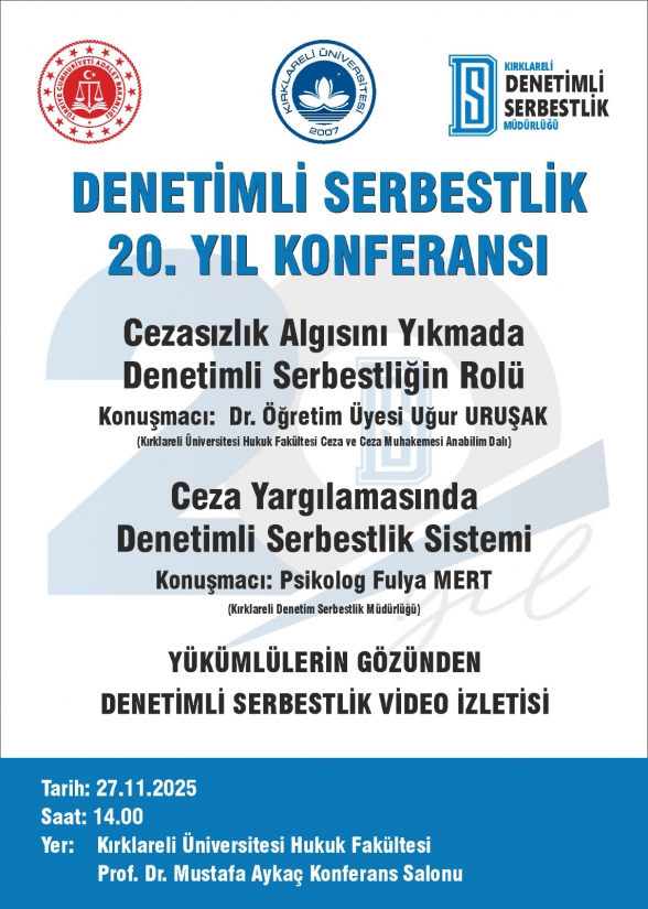 Kırklareli Denetimli Serbestlik Müdürlüğü'nün fakültemizde gerçekleştireceği etkinliğe tüm idari, akademik personelimiz ile öğrencilerimiz davetlidir.