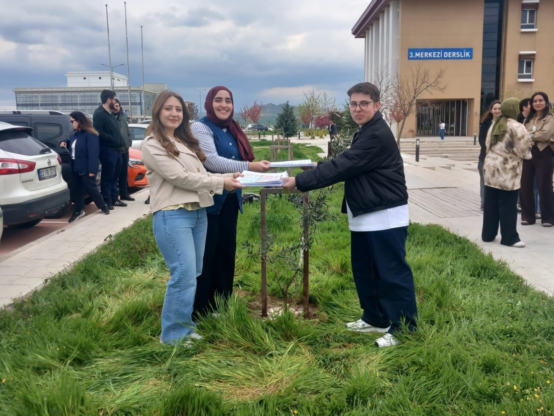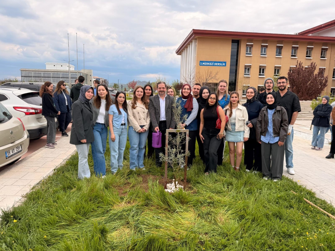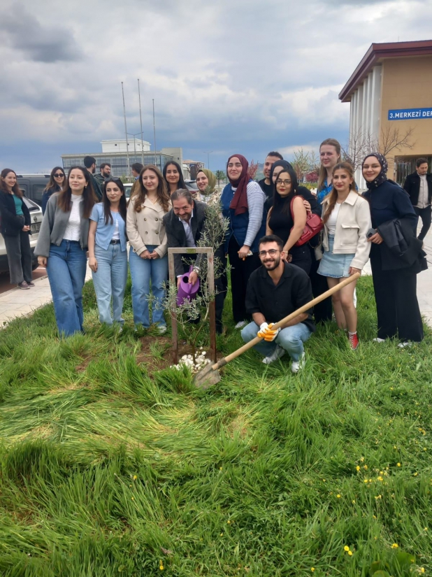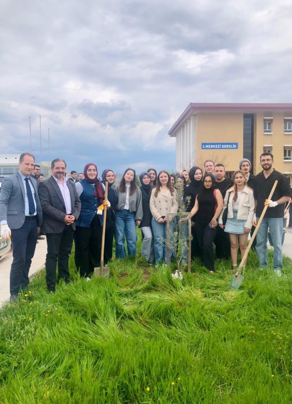 Fakültemizden 2025-2026 Akademik Yılı'nda mezun olacak öğrencilerimiz, gelenekselleşen ağaç dikim etkinliğimizi gerçekleştirerek kendilerinden sonraki öğrenciler için bir hatıra ağacı bıraktı. El birliğiyle diktikleri ağacı birinci sınıf öğrencilerine emanet eden mezuniyet adaylarımız birinci sınıftaki arkadaşlarına özenle hazırladıkları ders notlarını hediye ettiler. Mezun adaylarımız, birlikte diktikleri zeytin ağacını ileride yeniden ziyaret etme sözü verdiler. Etkinliğe katılan öğrencilerimiz mezuniyet ağacından ayrı olarak, erik ve akasya türü ağaçları da toprakla buluşturdular.